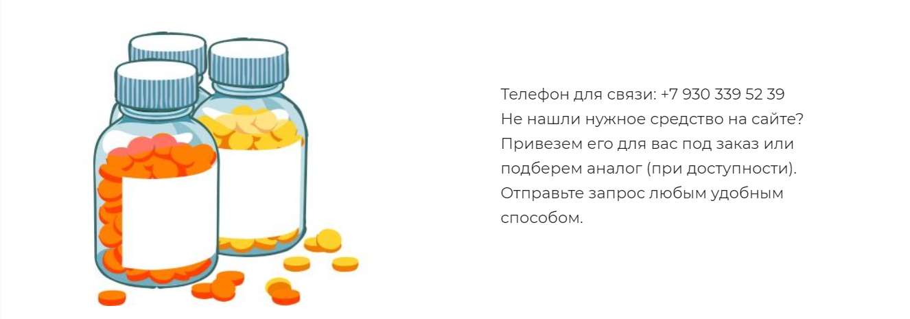 Не нашли в каталоге нужное средство? Свяжитесь с нами по любому каналу связи, мы либо найдем его и привезем под заказ, либо подберем аналог (при наличии такового).