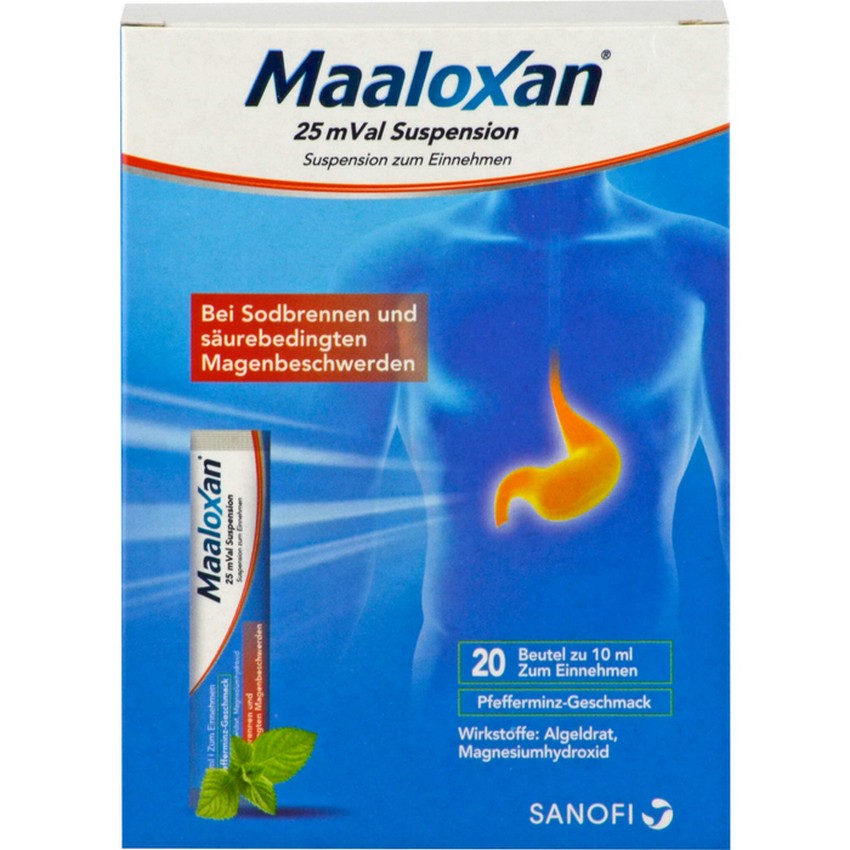Оригинальное лекарство (препарат) MAALOXAN 25 mVal Suspension 20X10 ml – Артикул 1427367 с доставкой под заказ в Москву из Германии.